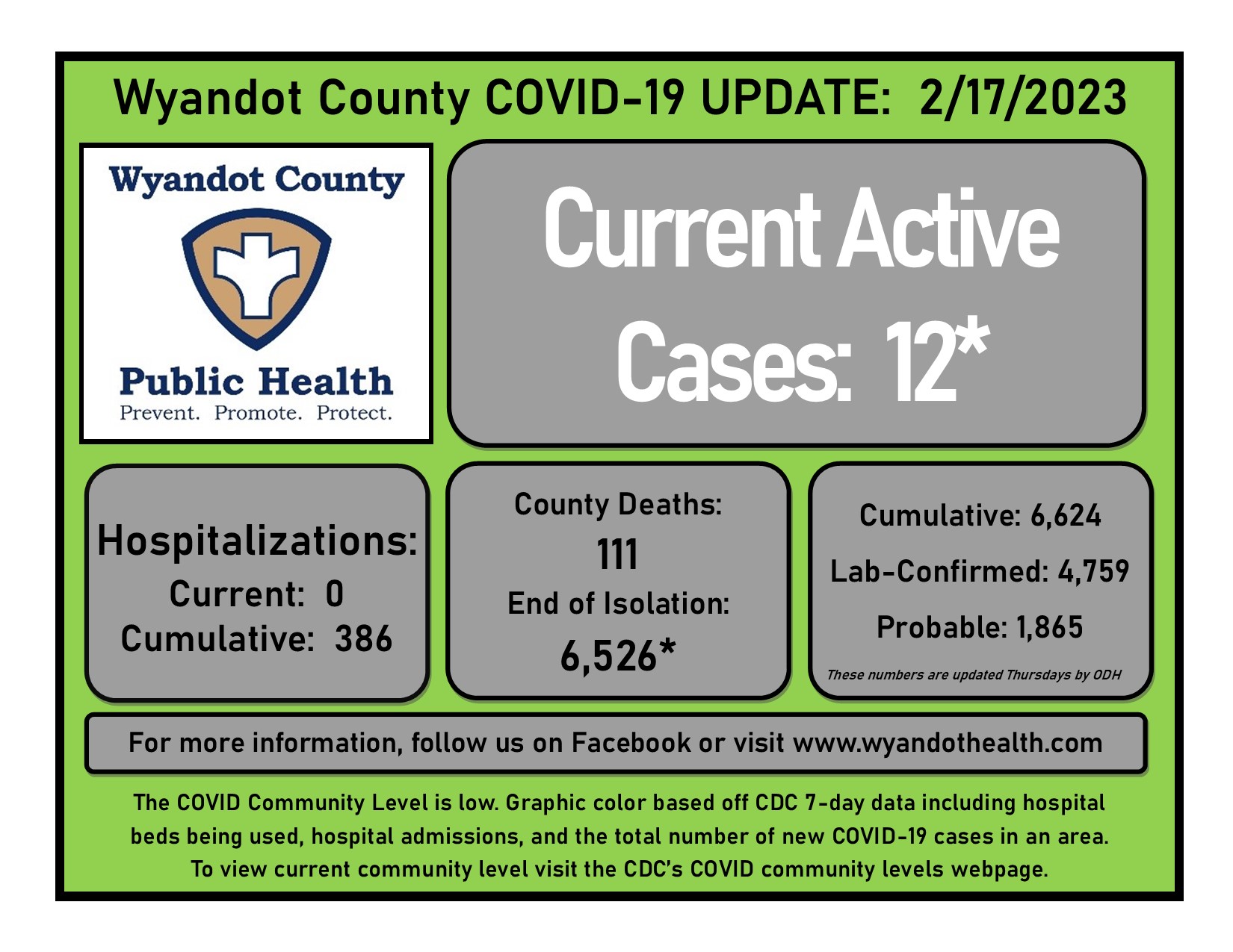 February 17, 2023, Wyandot County Public Health COVID-19 Update