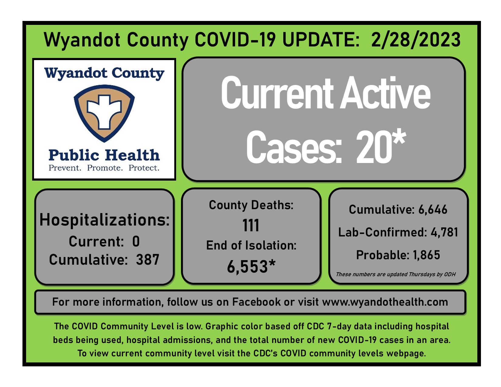 February 28, 2023, Wyandot County Public Health COVID-19 Update