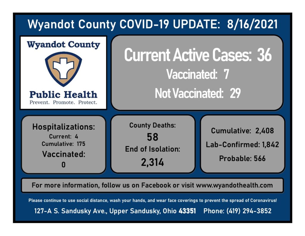 August 16, 2021 Wyandot County Public Health COVID-19 Update: