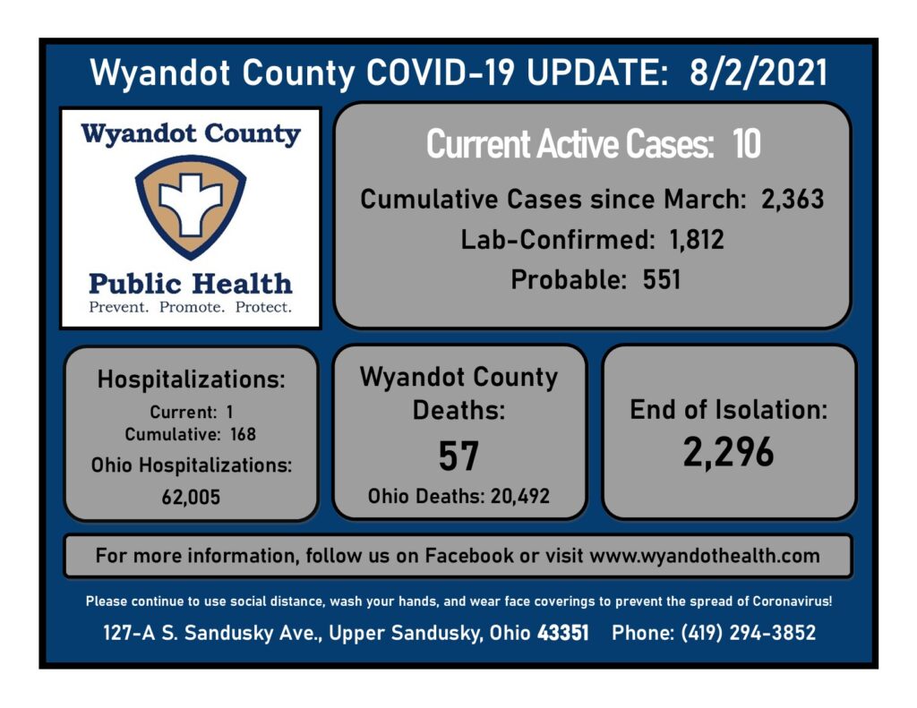 August 2, 2021 Wyandot County Public Health COVID-19 Update: