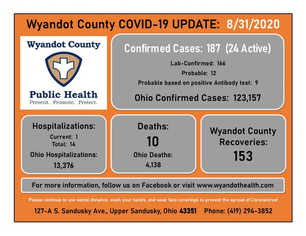 August 31, 2020 Wyandot County Public Health COVID-19 Update: