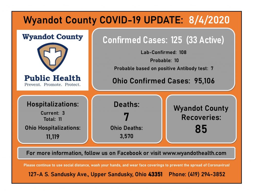 August 4, 2020 Wyandot County Public Health COVID-19 Update: