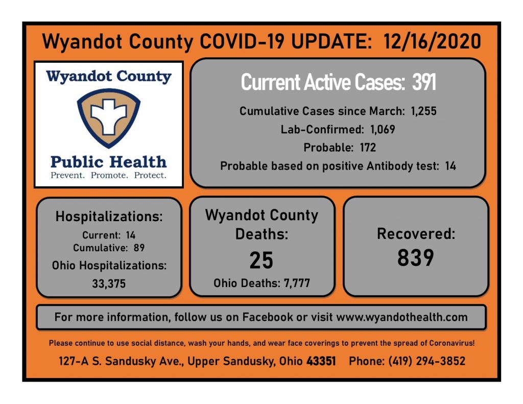 December 16, 2020 Wyandot County Public Health COVID-19 Update: