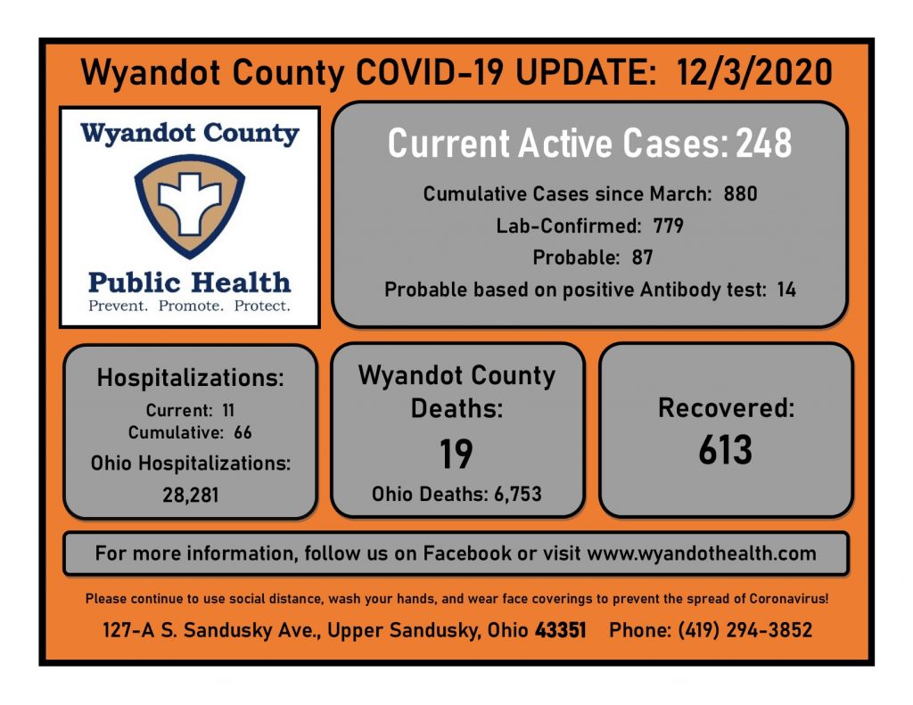 December 3, 2020 Wyandot County Public Health COVID-19 Update: