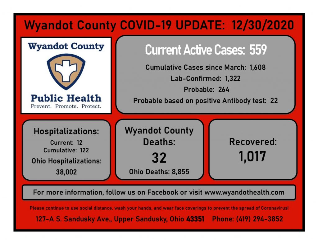 December 30, 2020 Wyandot County Public Health COVID-19 Update: