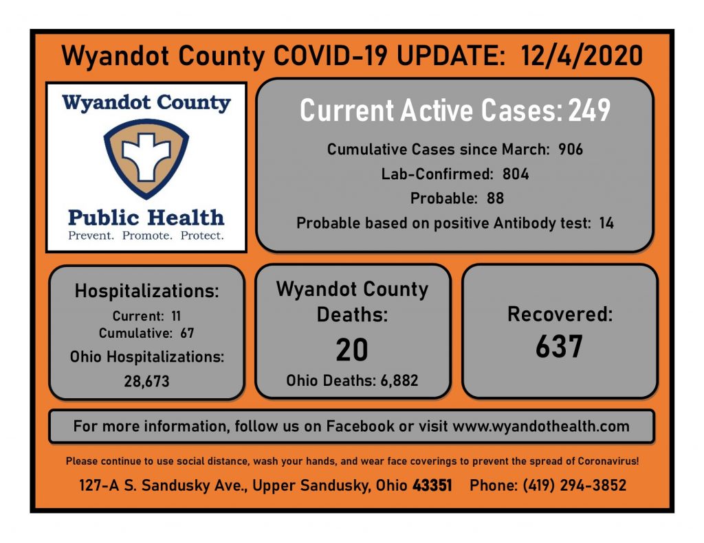 December 4, 2020 Wyandot County Public Health COVID-19 Update: