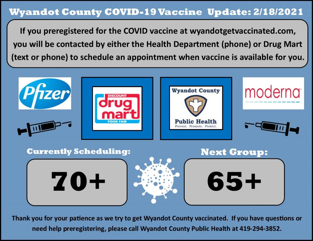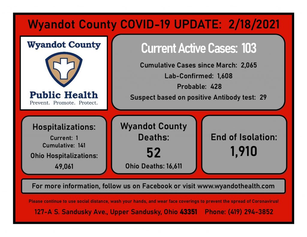 February 18, 2021 Wyandot County Public Health COVID-19 Update: