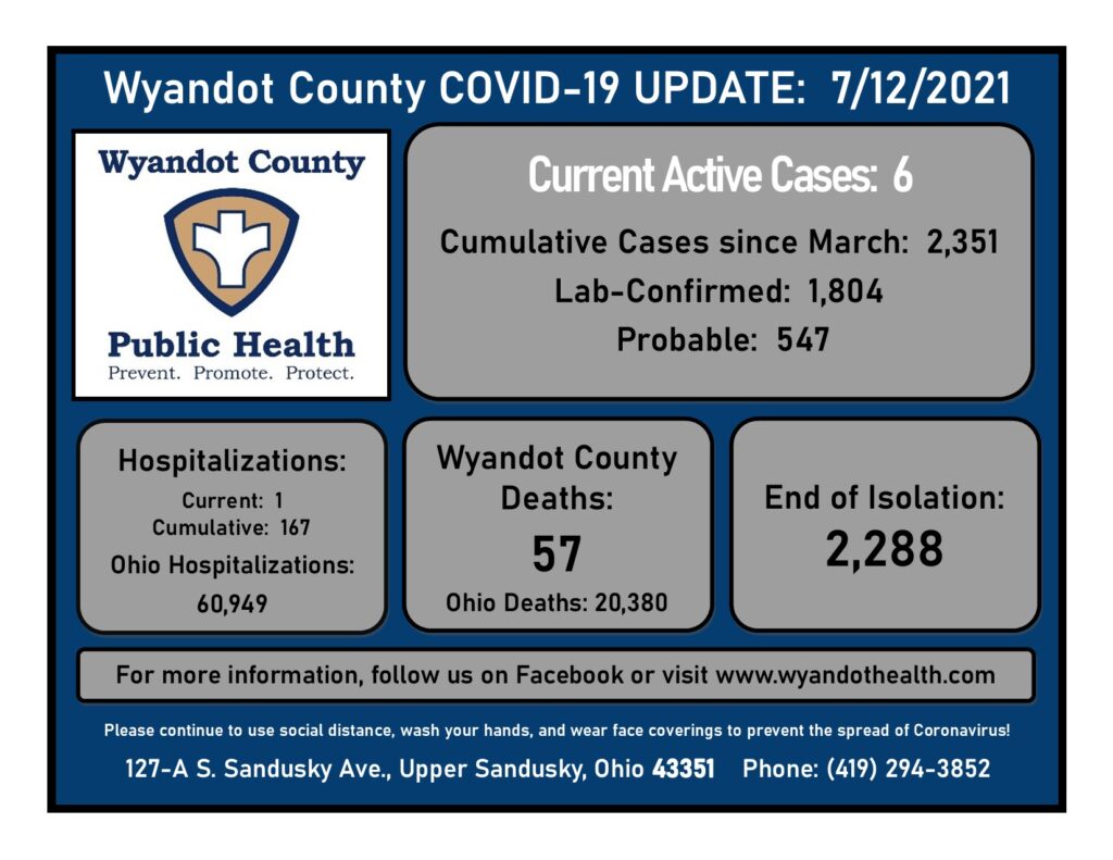 July 12, 2021 Wyandot County Public Health COVID-19 Update: