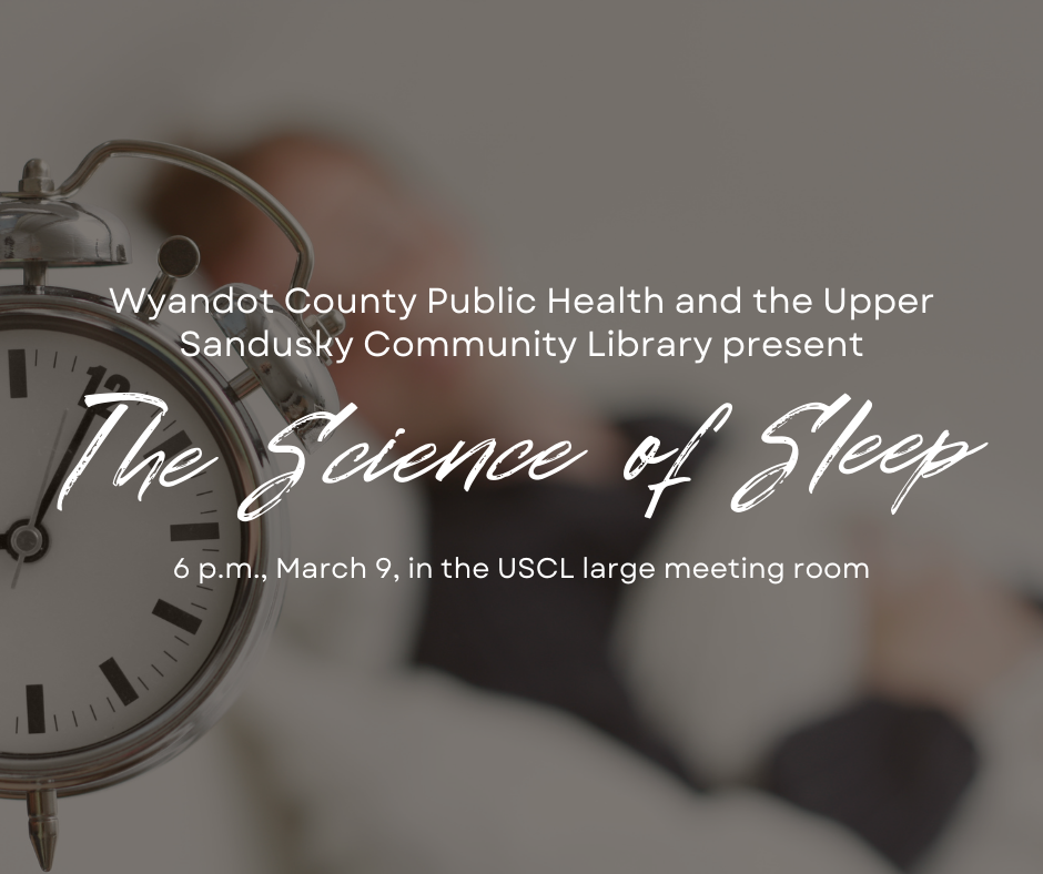 In honor of National Sleep Awareness Month and the upcoming time change, Wyandot County Public Health will continue its monthly series of health-related programs at the Upper Sandusky Community Library on March 9 with “The Science of Sleep.”