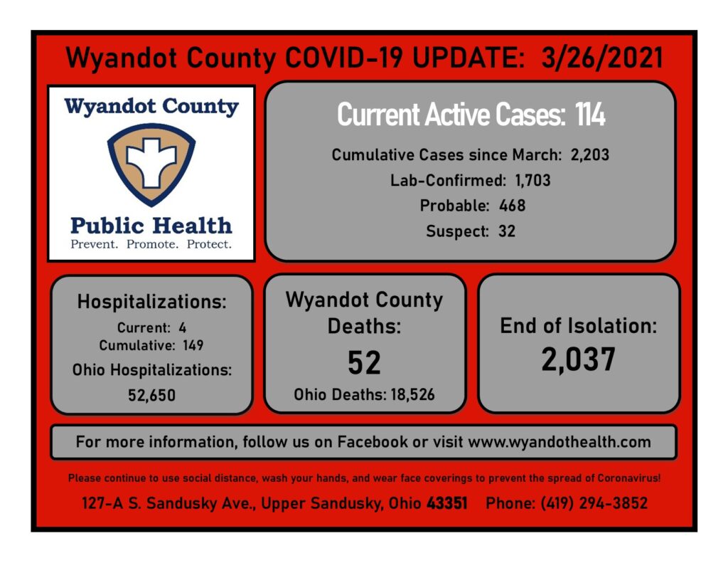 March 26, 2021 Wyandot County Public Health COVID-19 Update: