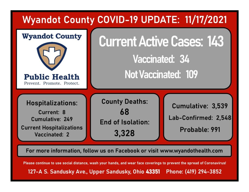 November 17, 2021 Wyandot County Public Health COVID-19 Update: