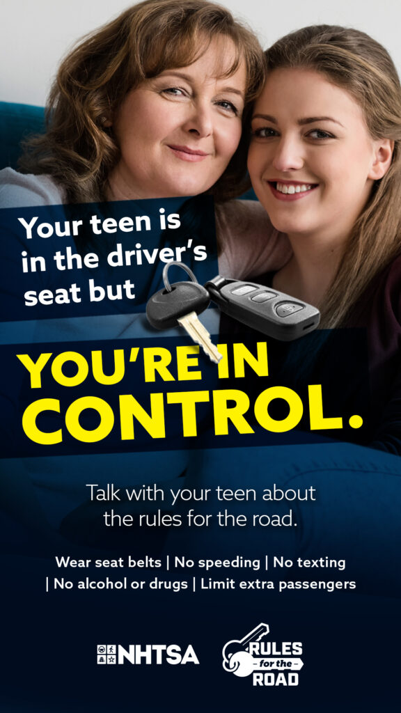 One of the riskiest things a teen does is drive a car. In fact, motor vehicle crashes are a leading cause of death for teens 15-18 in the United States. Remind young drivers and their passengers to make the right decision to buckle their seat belts, to put down phones and other distractions, and to get a safe ride home when they’re impaired.