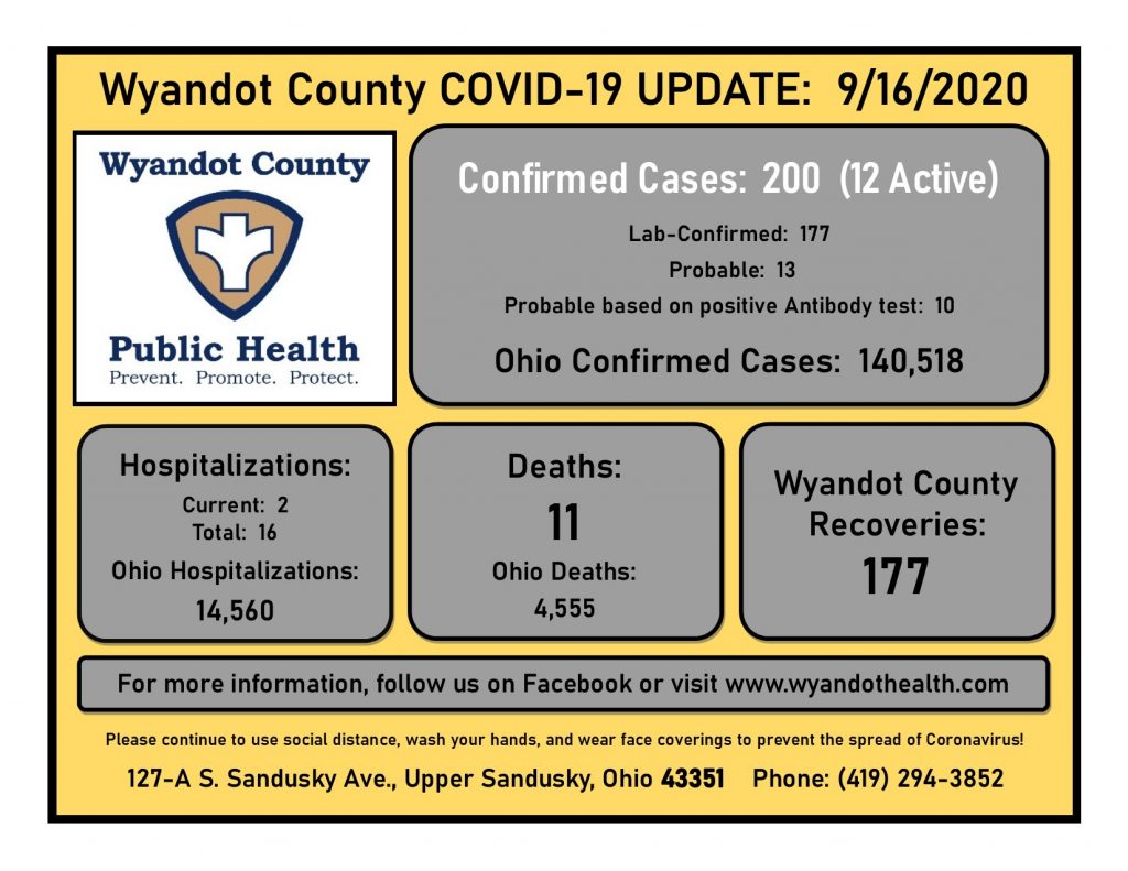 September 16, 2020 Wyandot County Public Health COVID-19 Update: