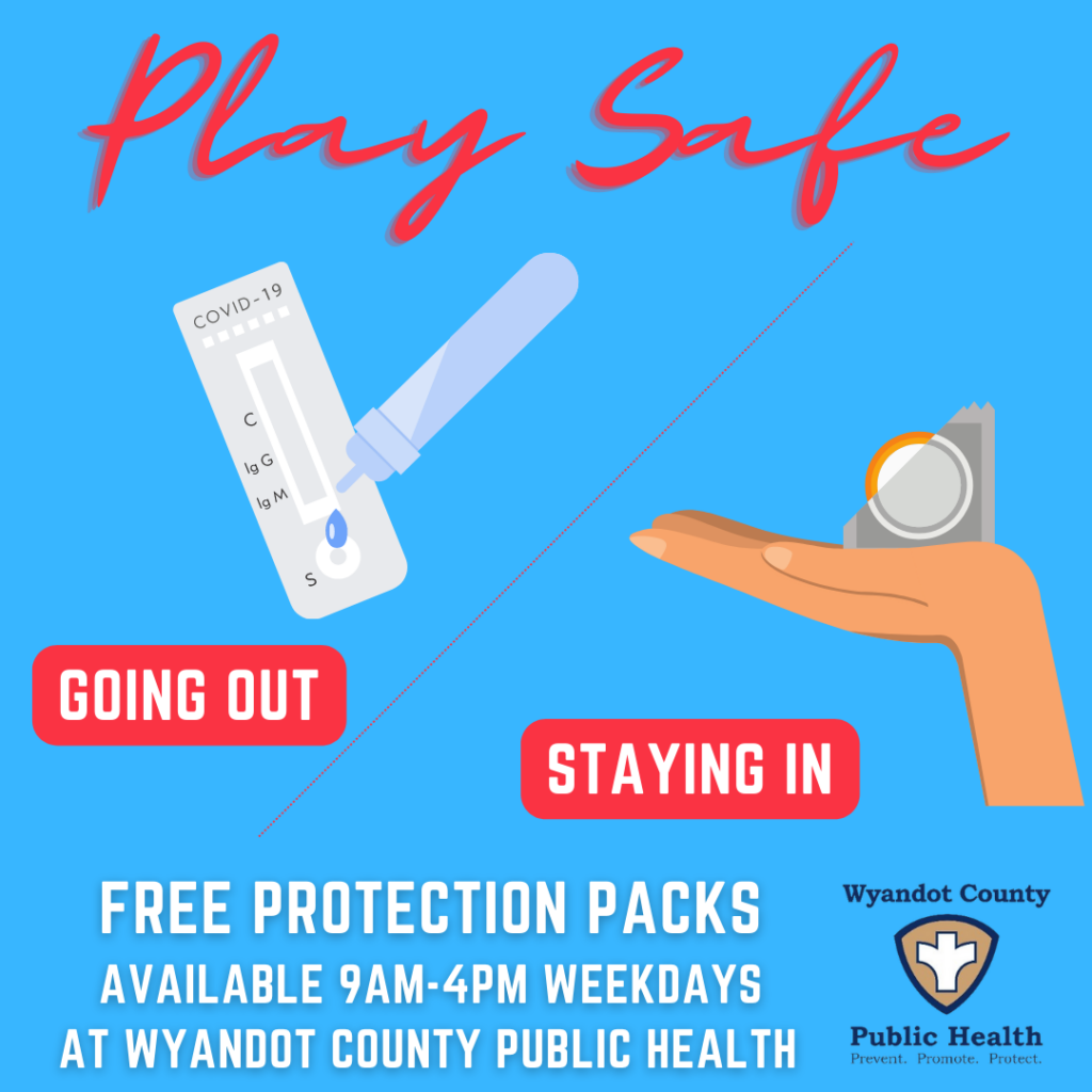 In order to keep yourself and loved ones safe during this exciting time, Wyandot County Public Health is passing out FREE protection packs. Each pack will provide COVID-19 test kits and condoms to make sure all that is spread is happiness.